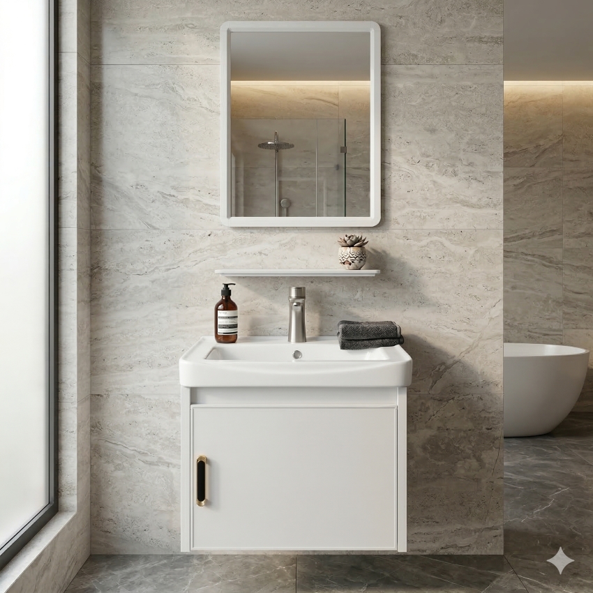 BỘ TỦ LAVABO TREO TƯỜNG MINI MÀU TRẮNG BẰNG NHÔM NHỎ GỌN