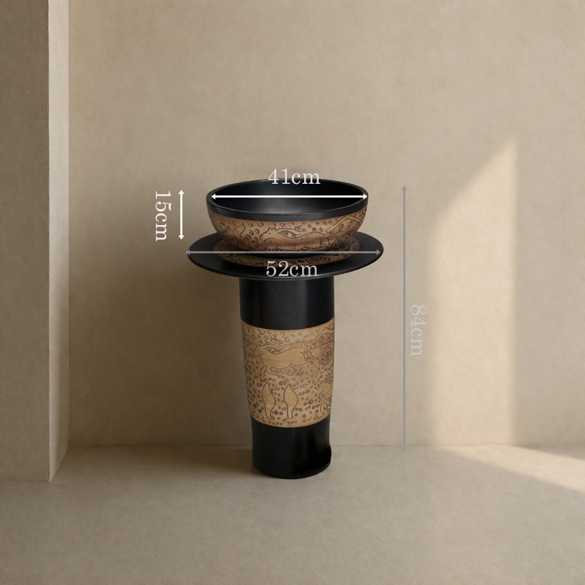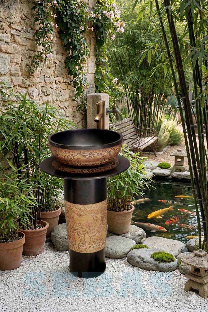 CHẬU RỬA MẶT SÂN VƯỜN TRỤ ĐỨNG HỌA TIẾT THỦ CÔNG ĐỘC ĐÁO