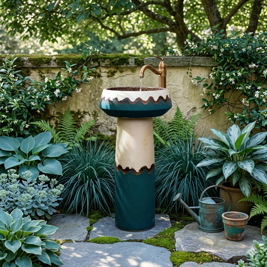 Lavabo sân vườn kiểu trụ đứng đặt sàn để ngoài trời phong cách Đông Dương L01SV